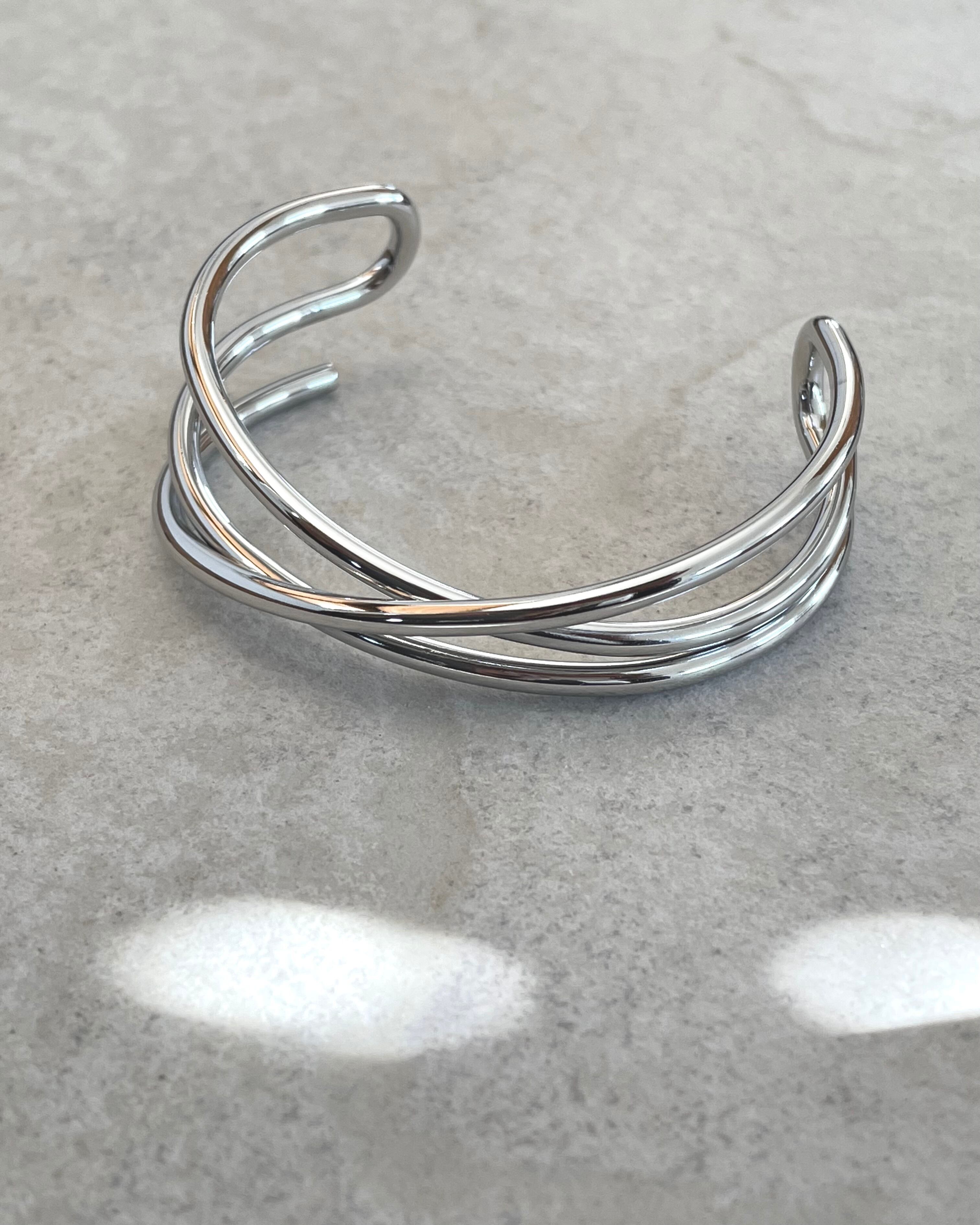 サージカルステンレス製のワイヤーを曲げて整形されたバングルです。