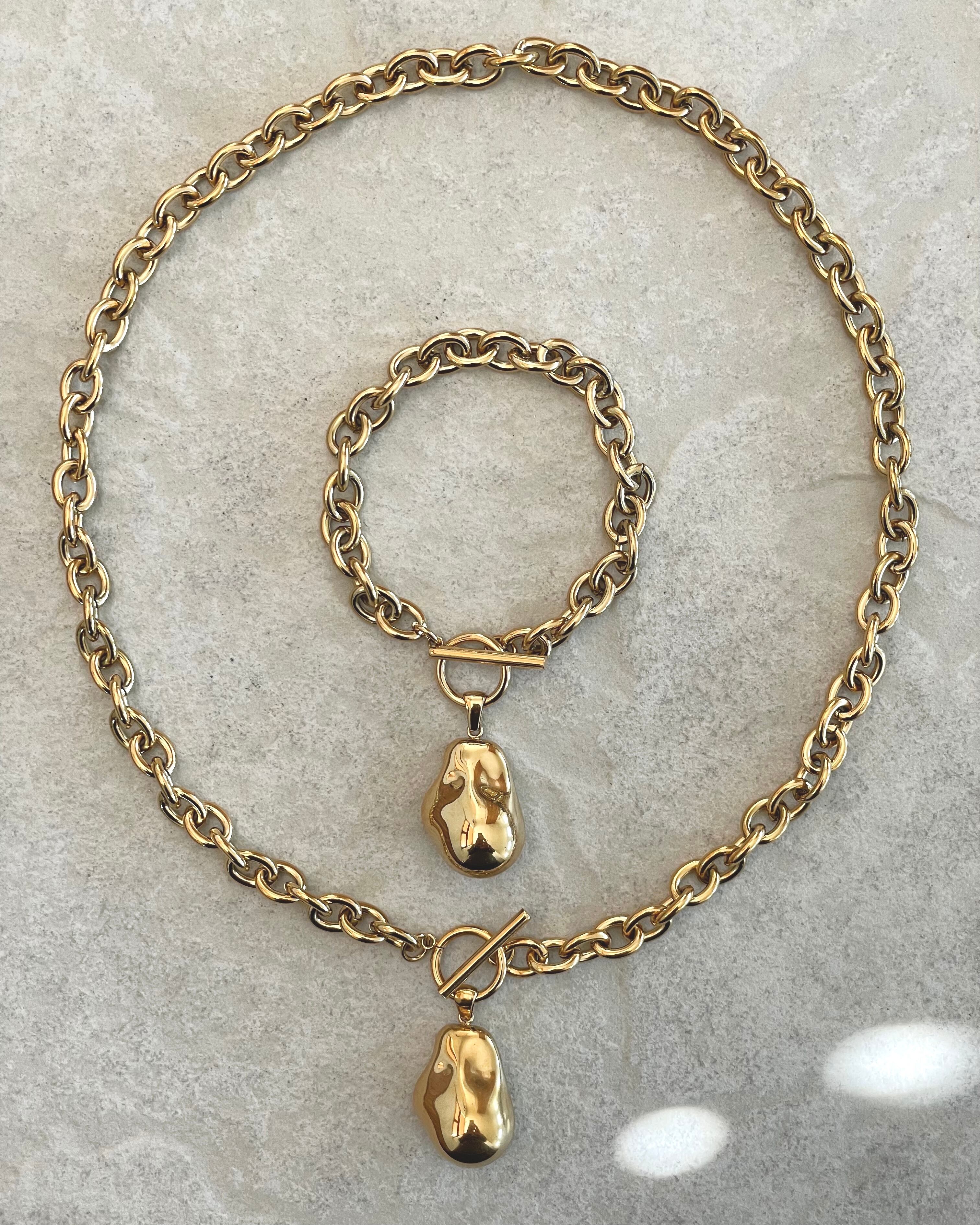 大振りなバロックデザインのチャームがアクセントなサージカルステンレス製ネックレスです。