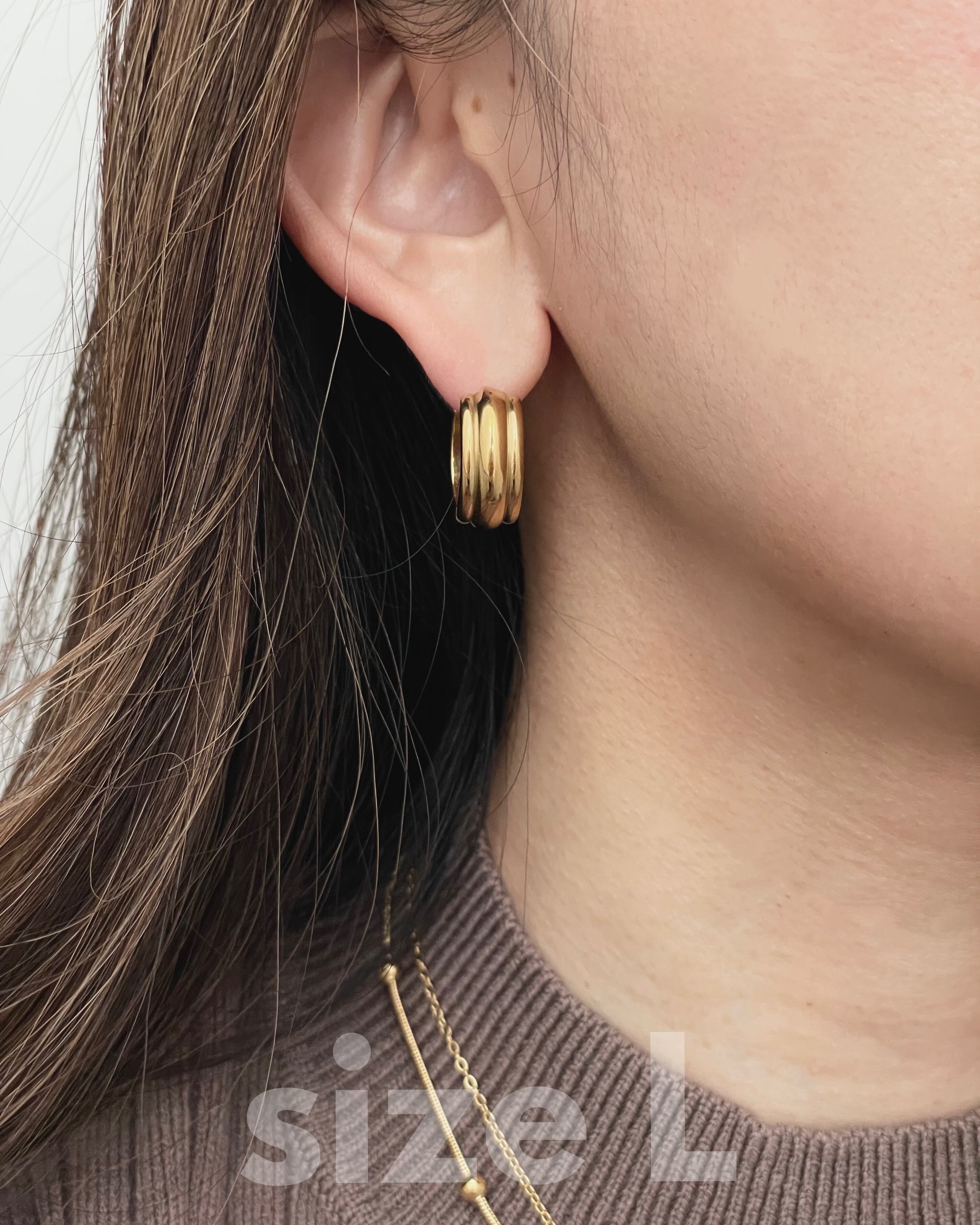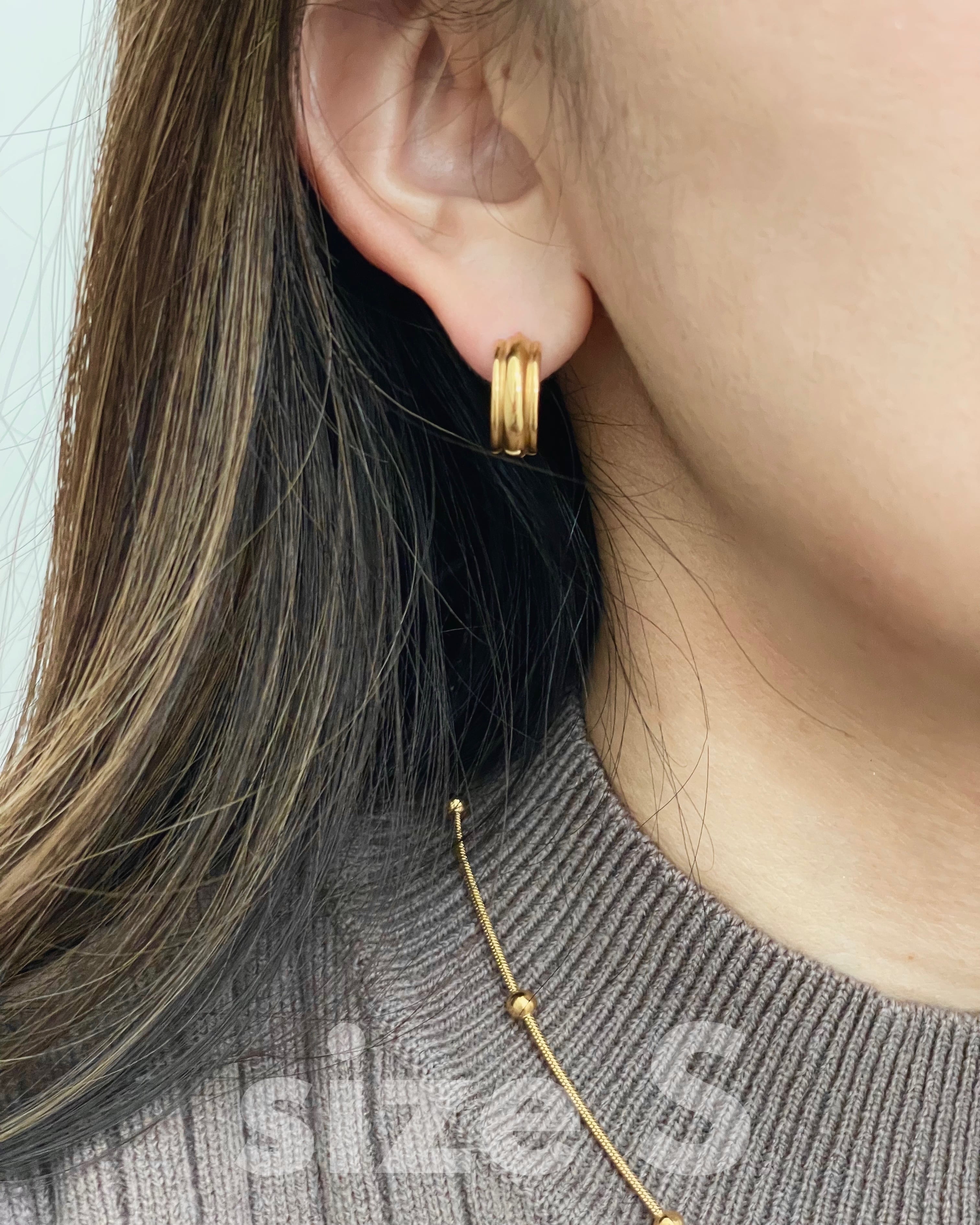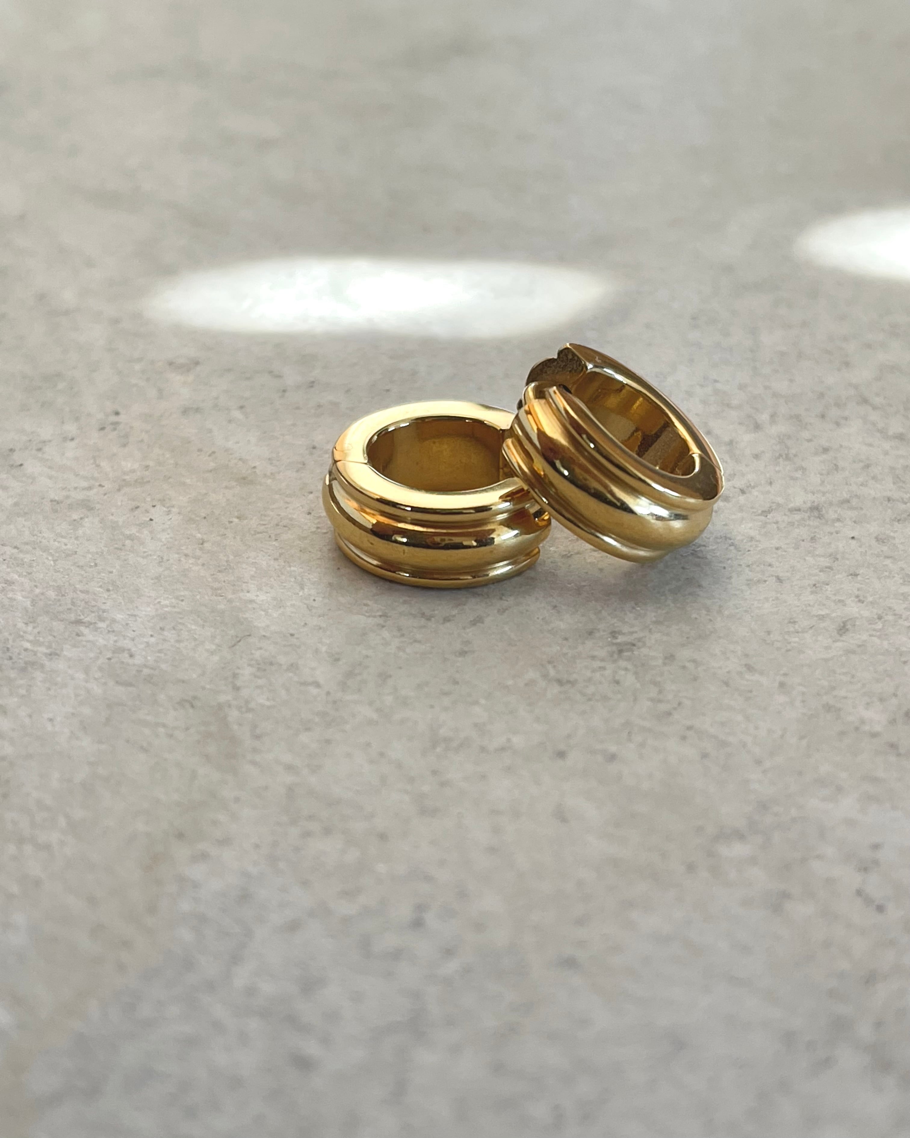 ビンテージな雰囲気漂うデザインが可愛い、サージカルステンレス製のセンタースナップピアス(中折れフープ)です。