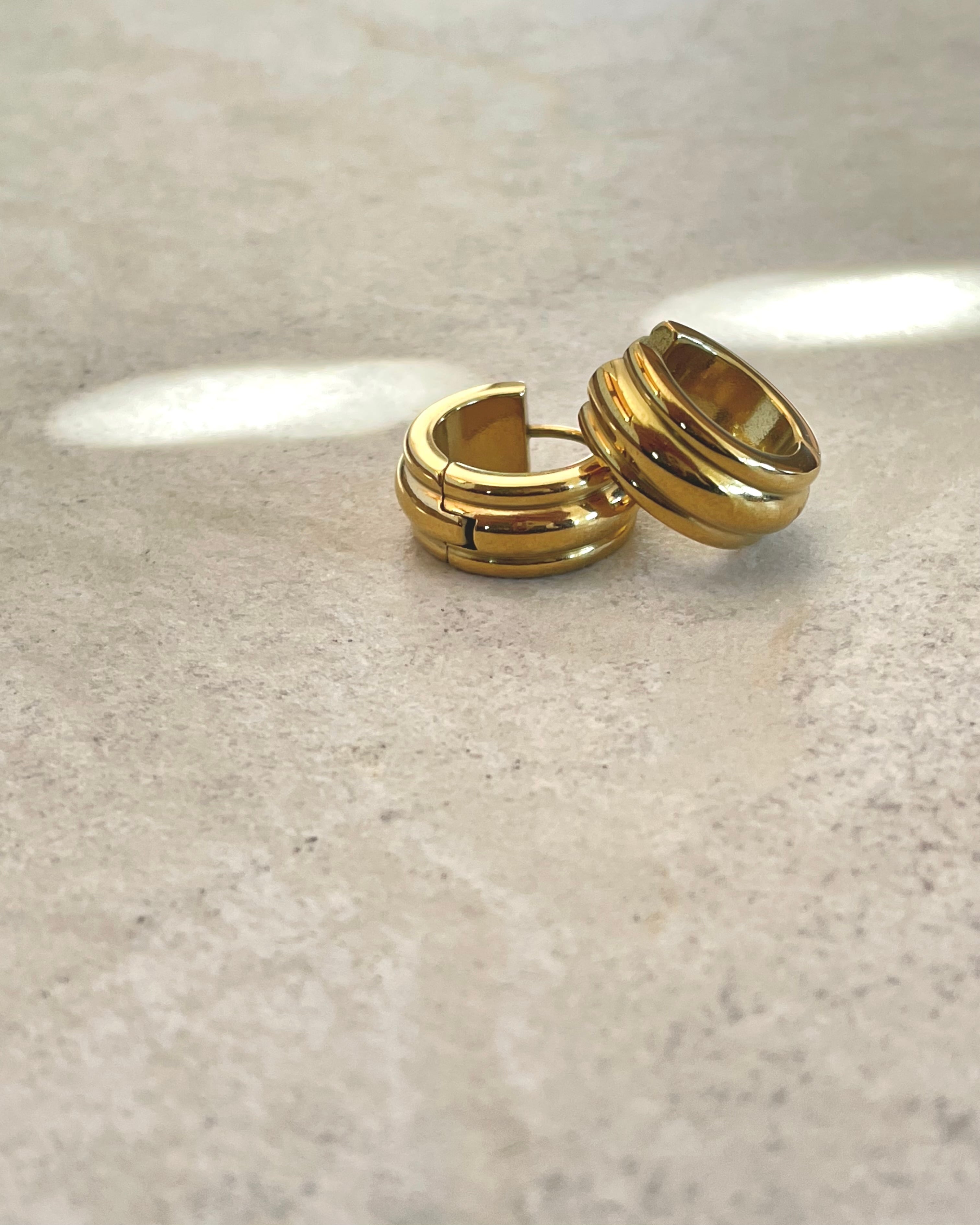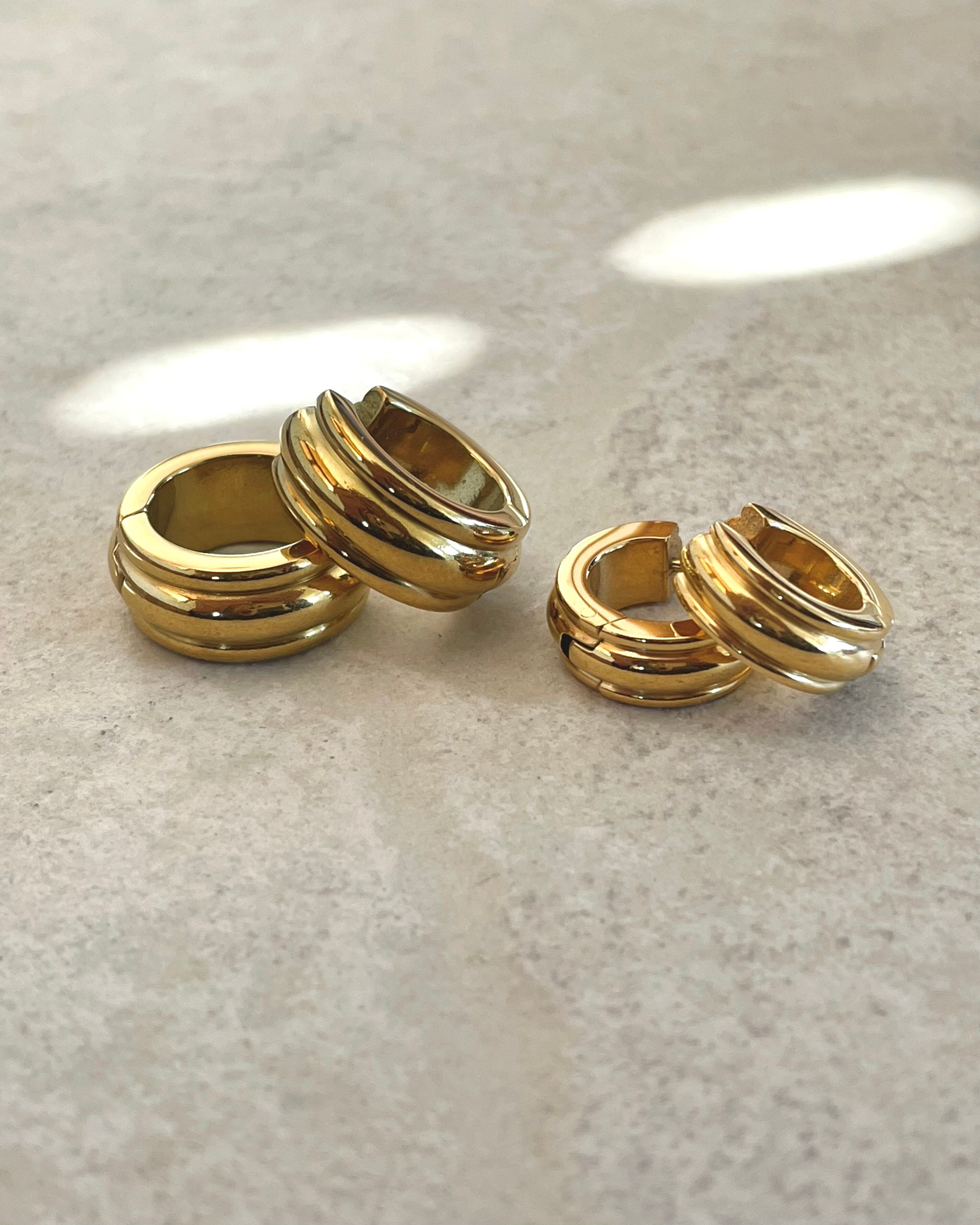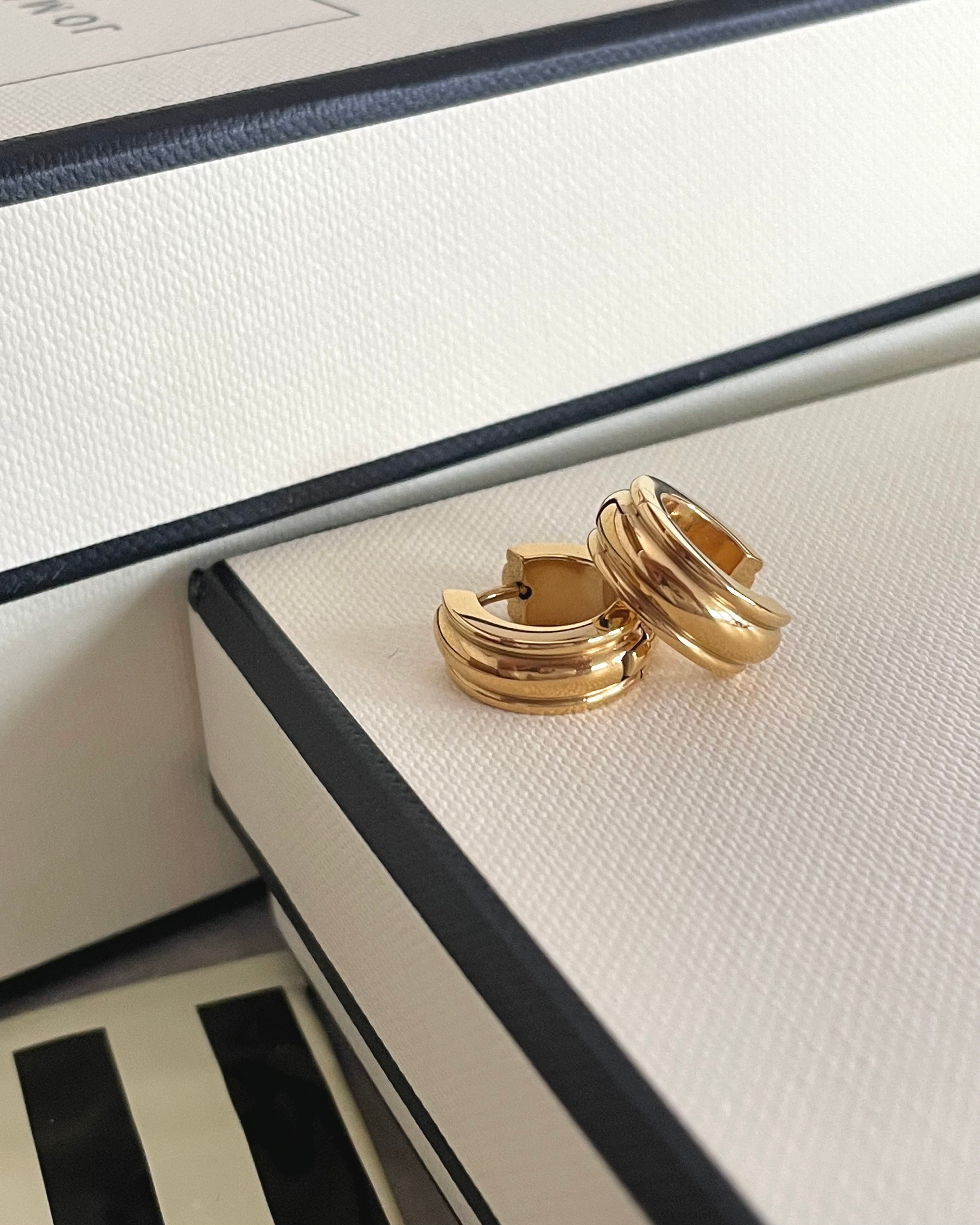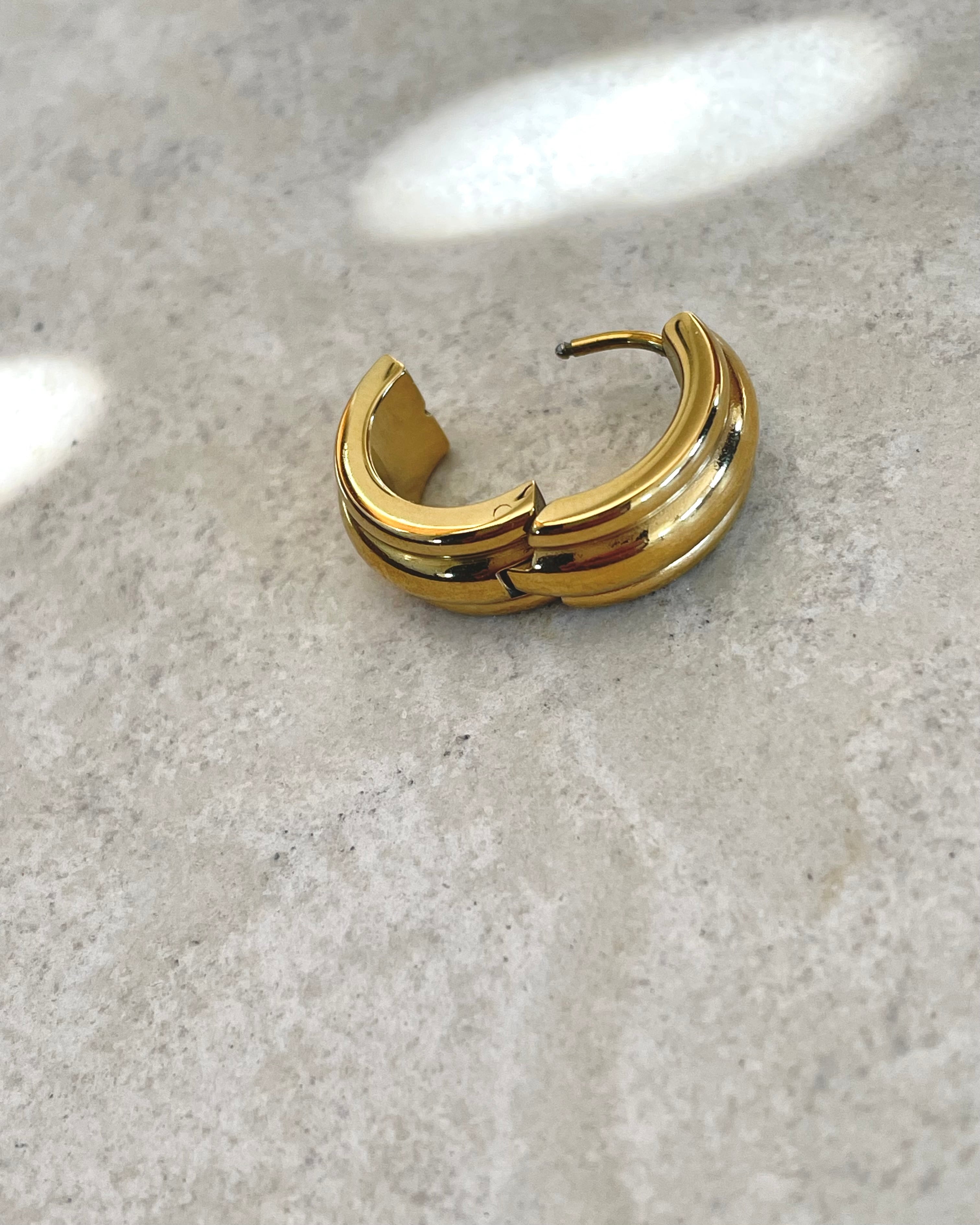 ビンテージな雰囲気漂うデザインが可愛い、サージカルステンレス製のセンタースナップピアス(中折れフープ)です。