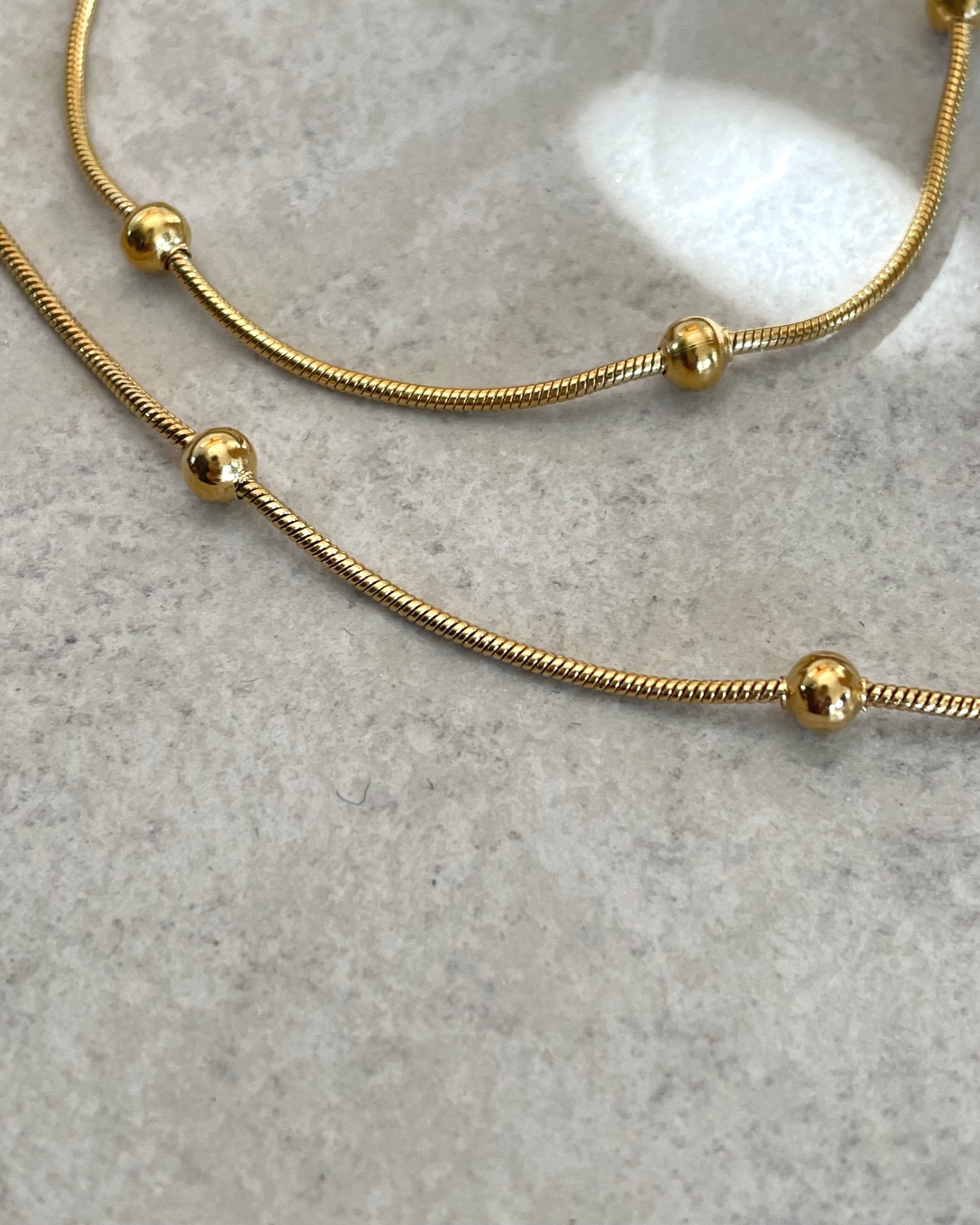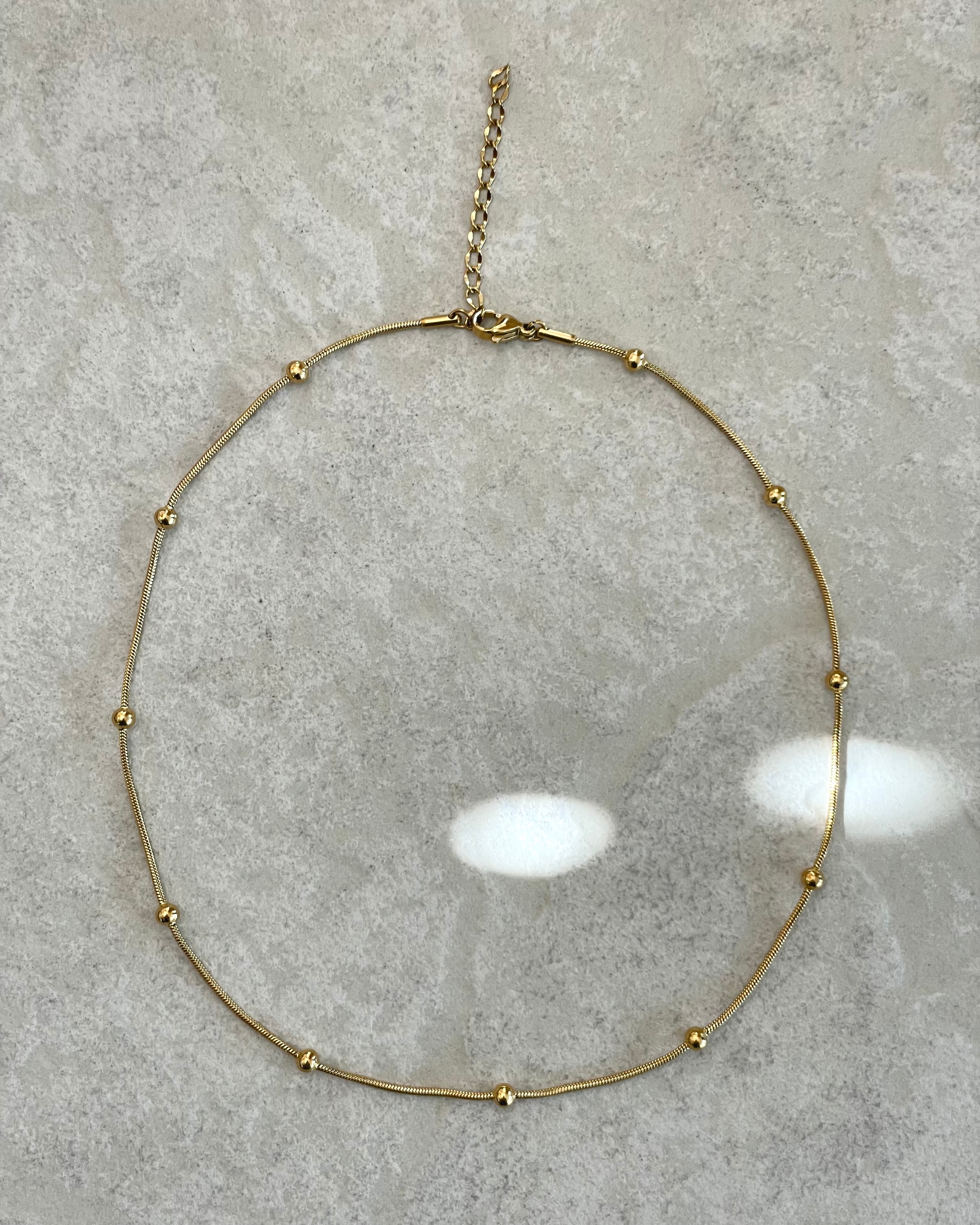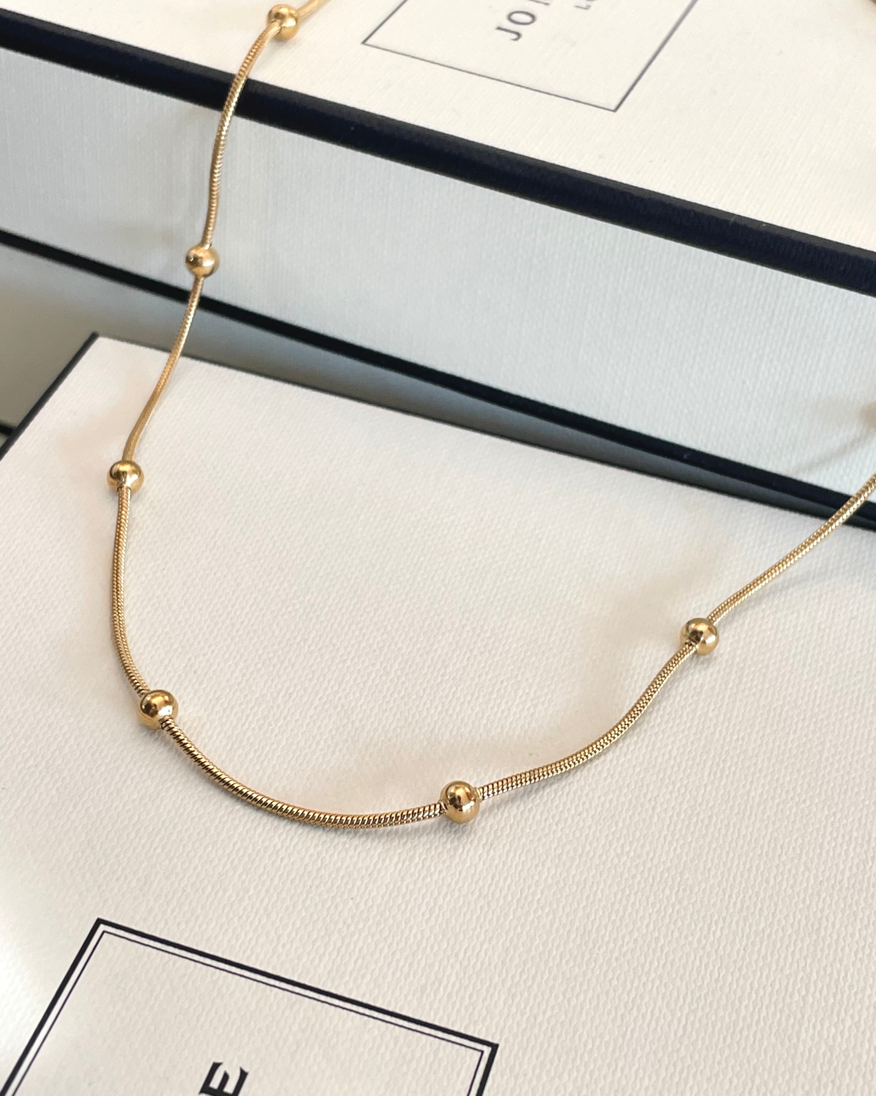 サージカルステンレス製のスネークチェーンに等間隔でステンレスボールが配置されたネックレスです。