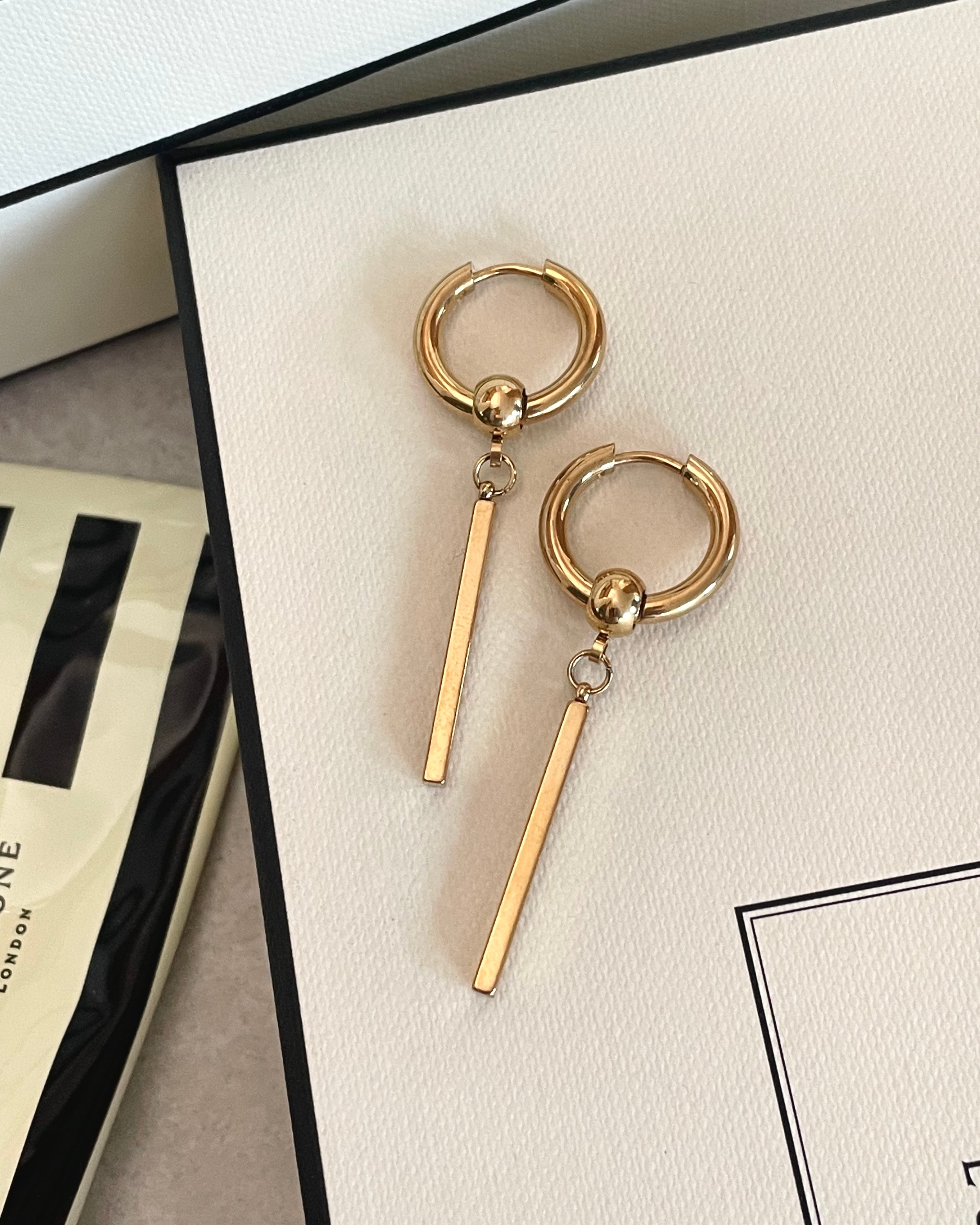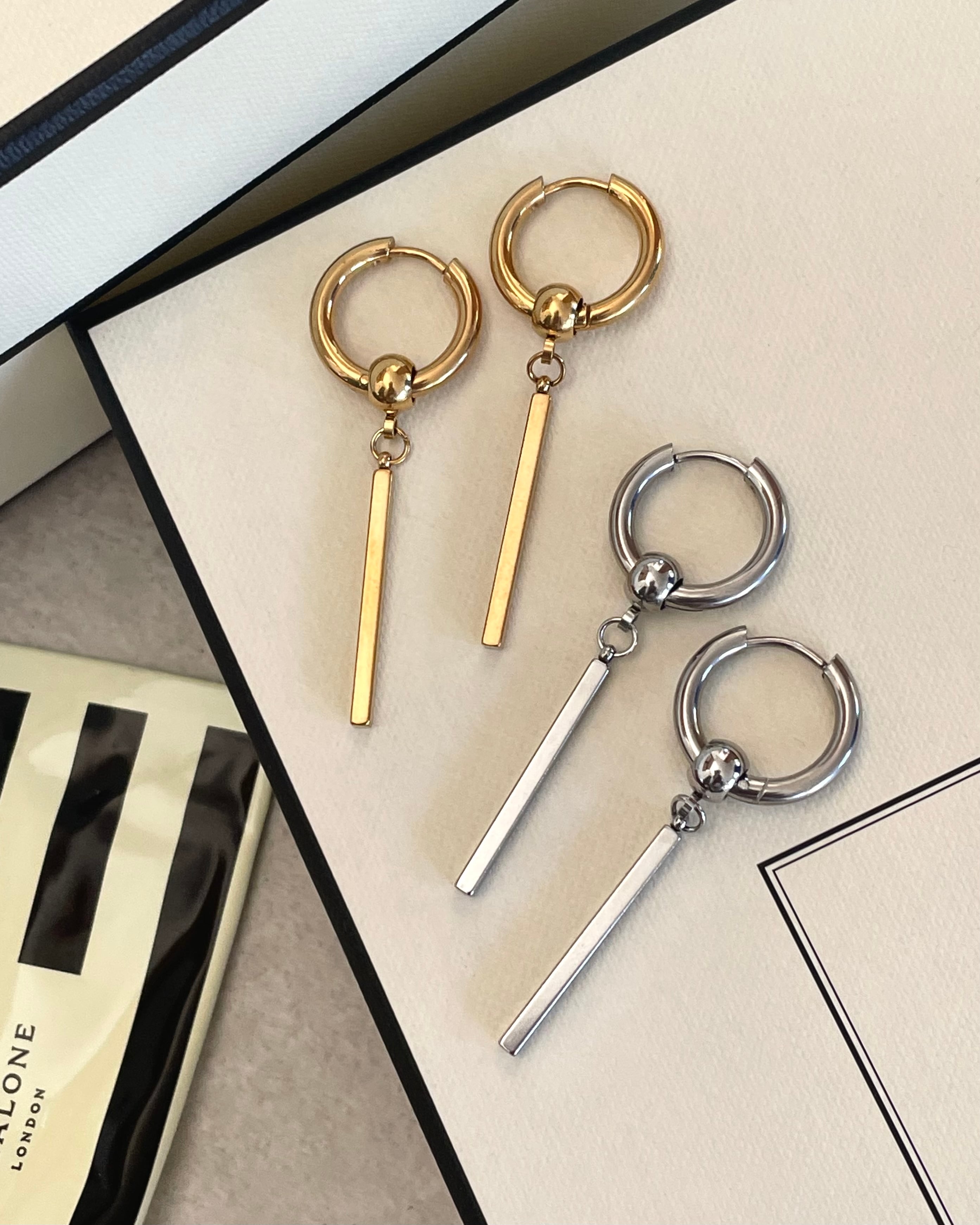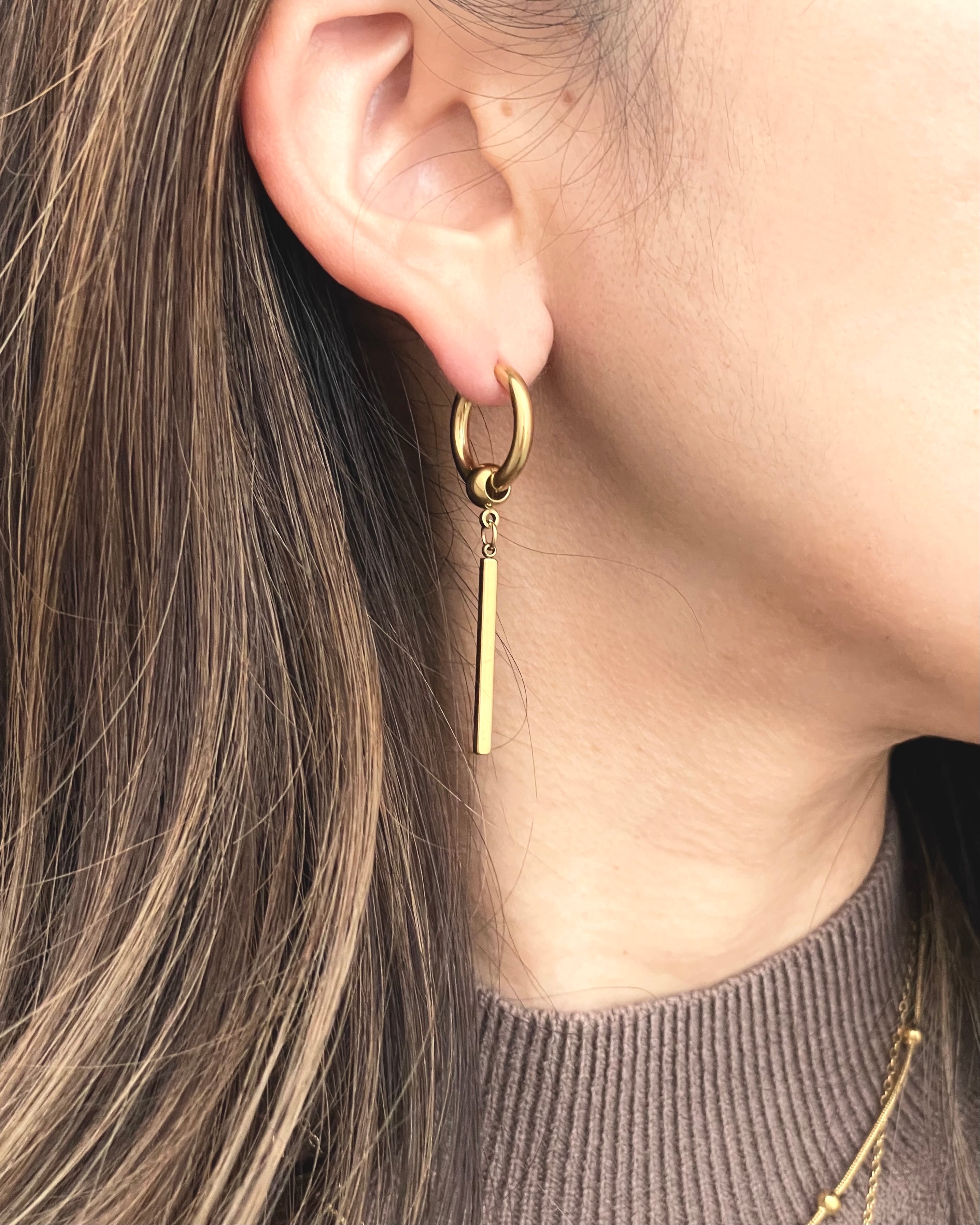 細身のバーパーツが印象的なセンタースナップ(中折れ式)ピアスです。