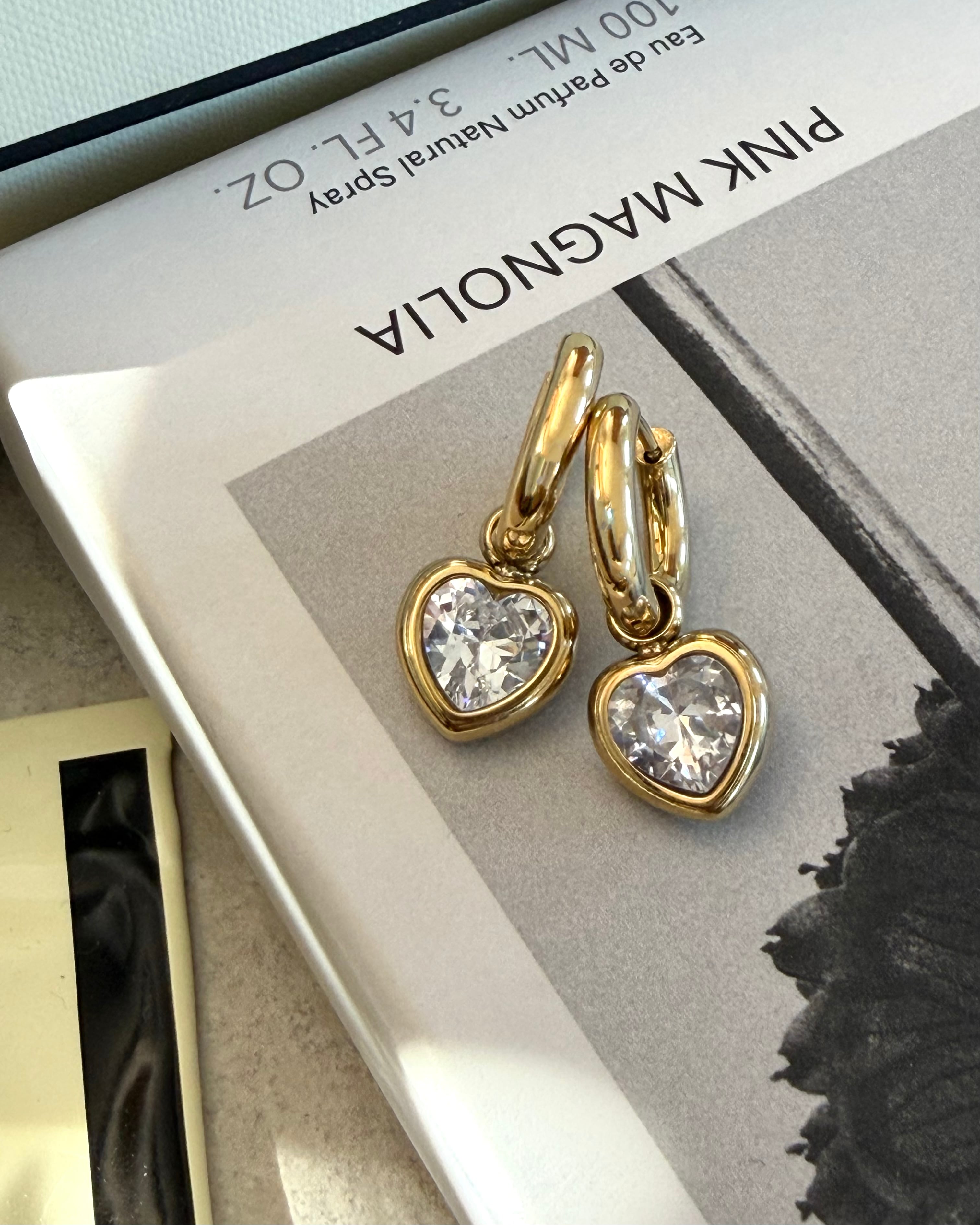 ハートカットのキュービックジルコニアがセッティングされたセンタースナップ(中折れ式)ピアスです。