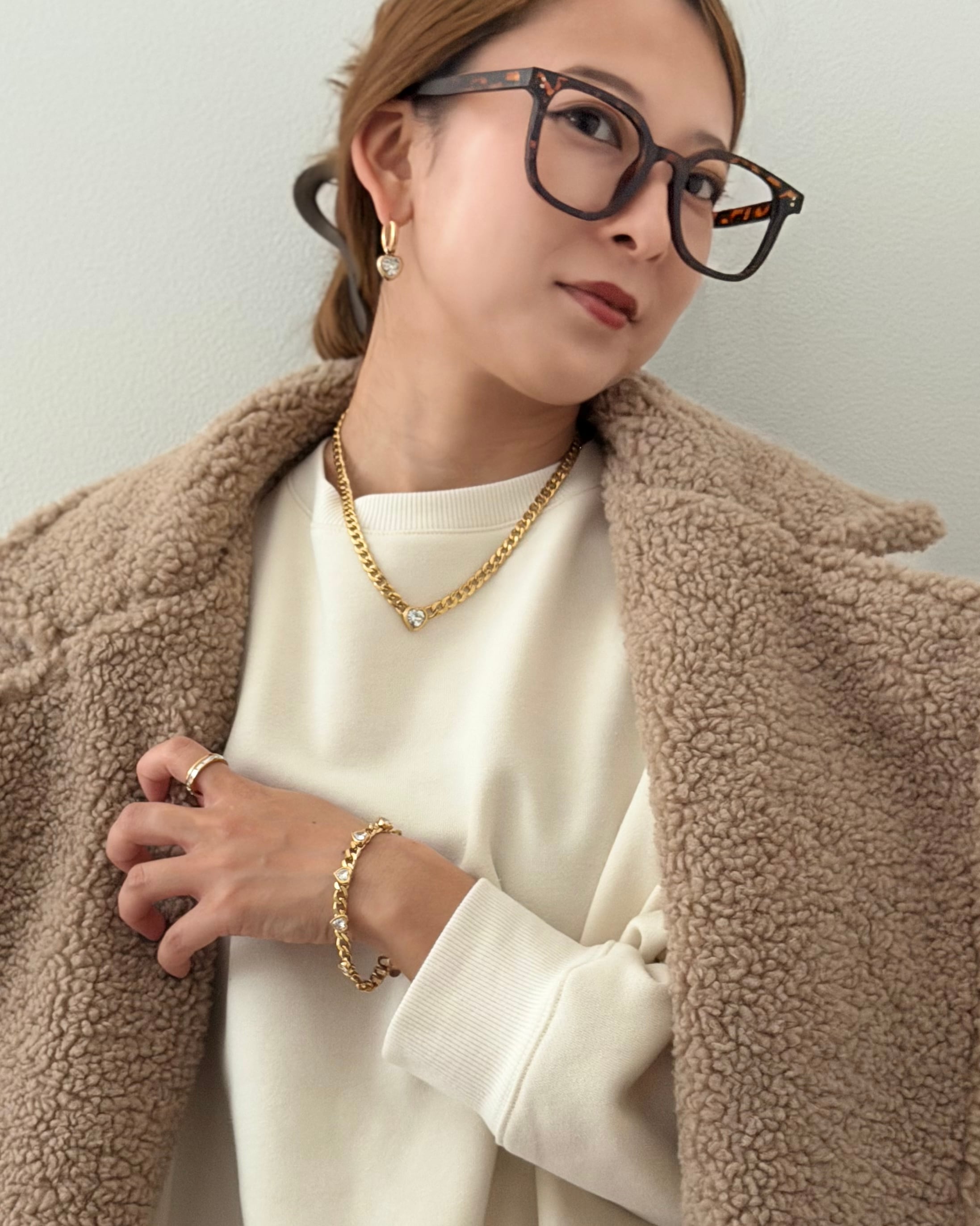甘すぎないハートデザインのアクセントが入る事でコーディネートの幅も広がります。